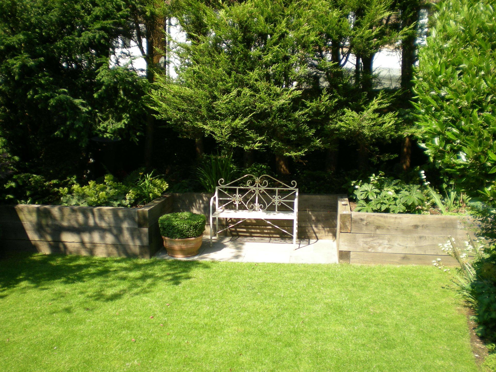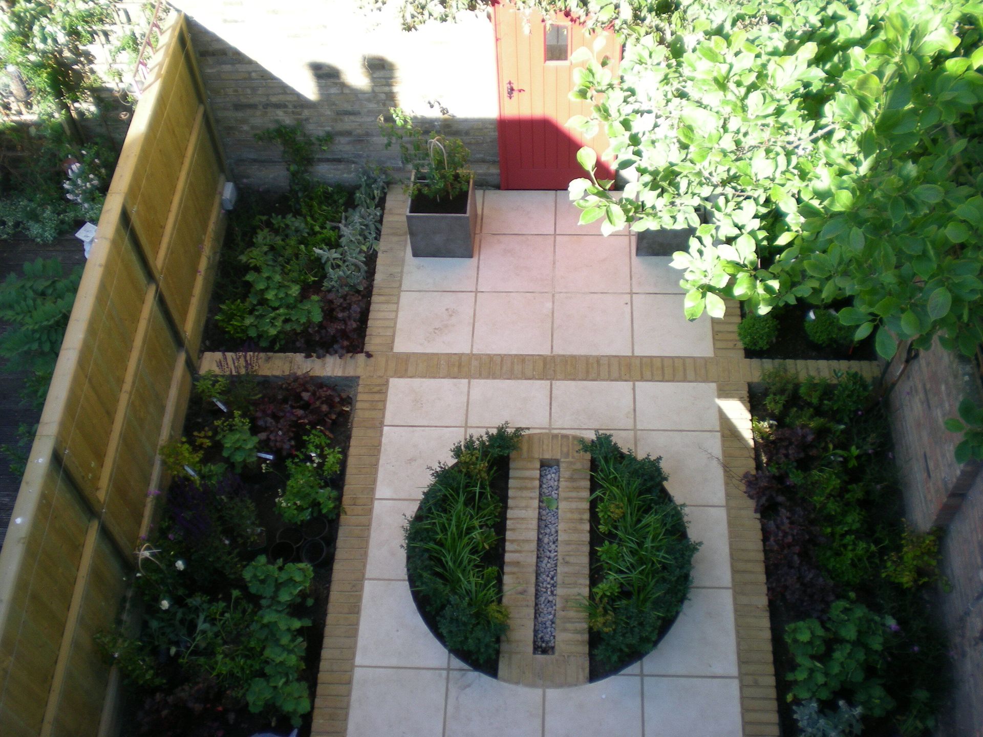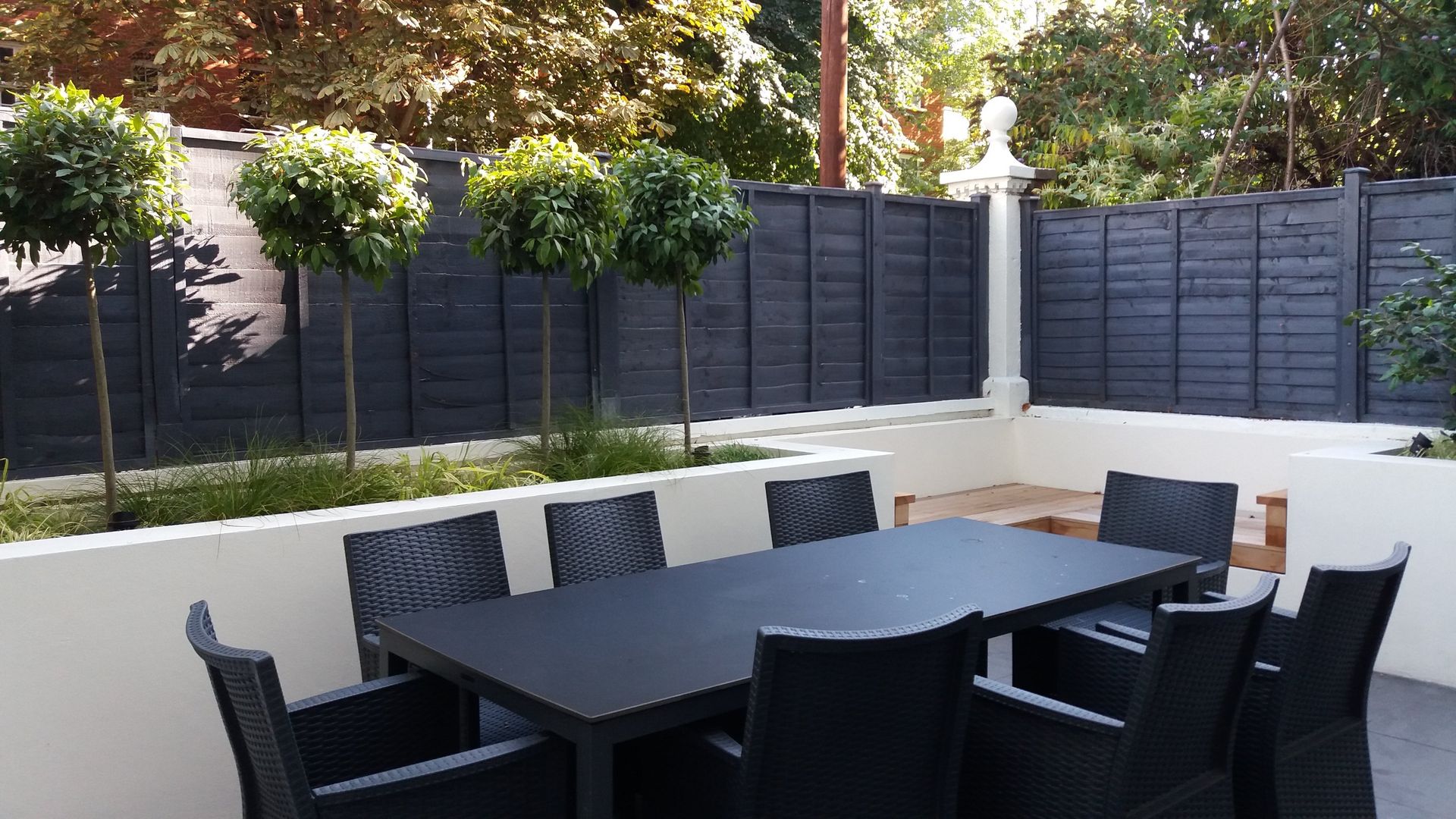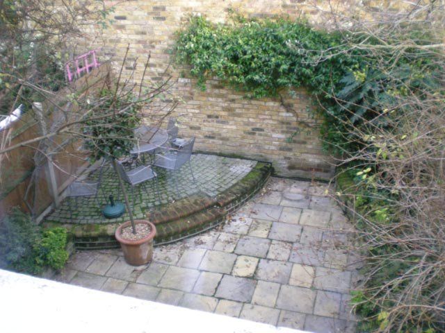 Before & after in Fulham - raised area dug out and replaced with pavers, raised borders and a bench built in too: